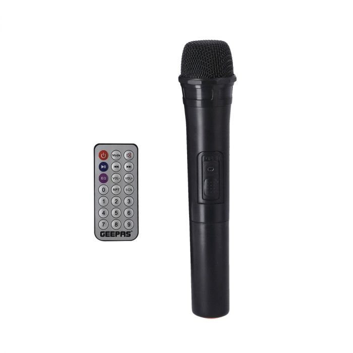 اقلام همراه بلندگو میکروفون بیسیم و ریموت کنترل و کابل اتصال برای وصل کردن جفت سیستم به هم و کابل اتصال به تلویزیون